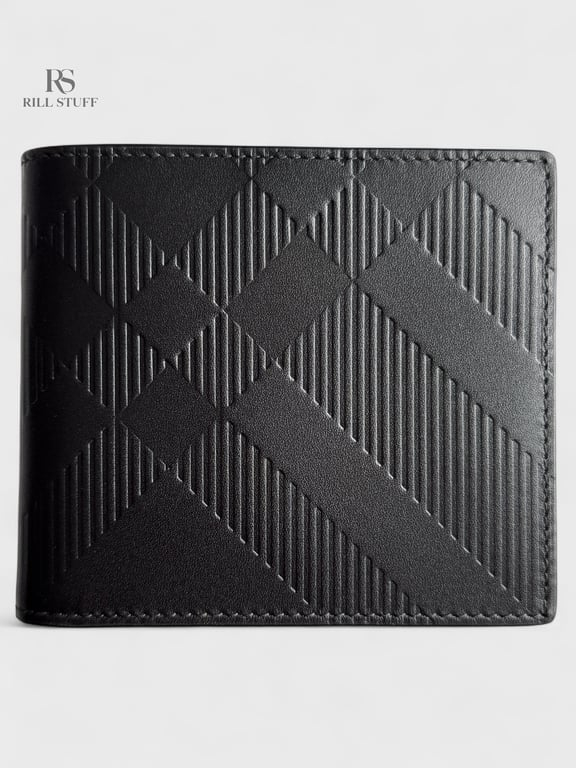Складной бумажник из гладкой опойковой кожи с тисненым узором в клетку.
